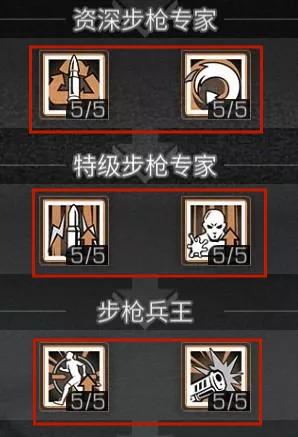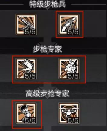 技能推荐---初级步枪兵:步枪精通技能可以提升换弹速度,在对抗中获得先机,以点破面技能可以对同一目标持续叠加伤害加成,连续对同一目标输出至第六枪开始伤害加成达到最大值,使用霰弹枪可以直接叠满哦。