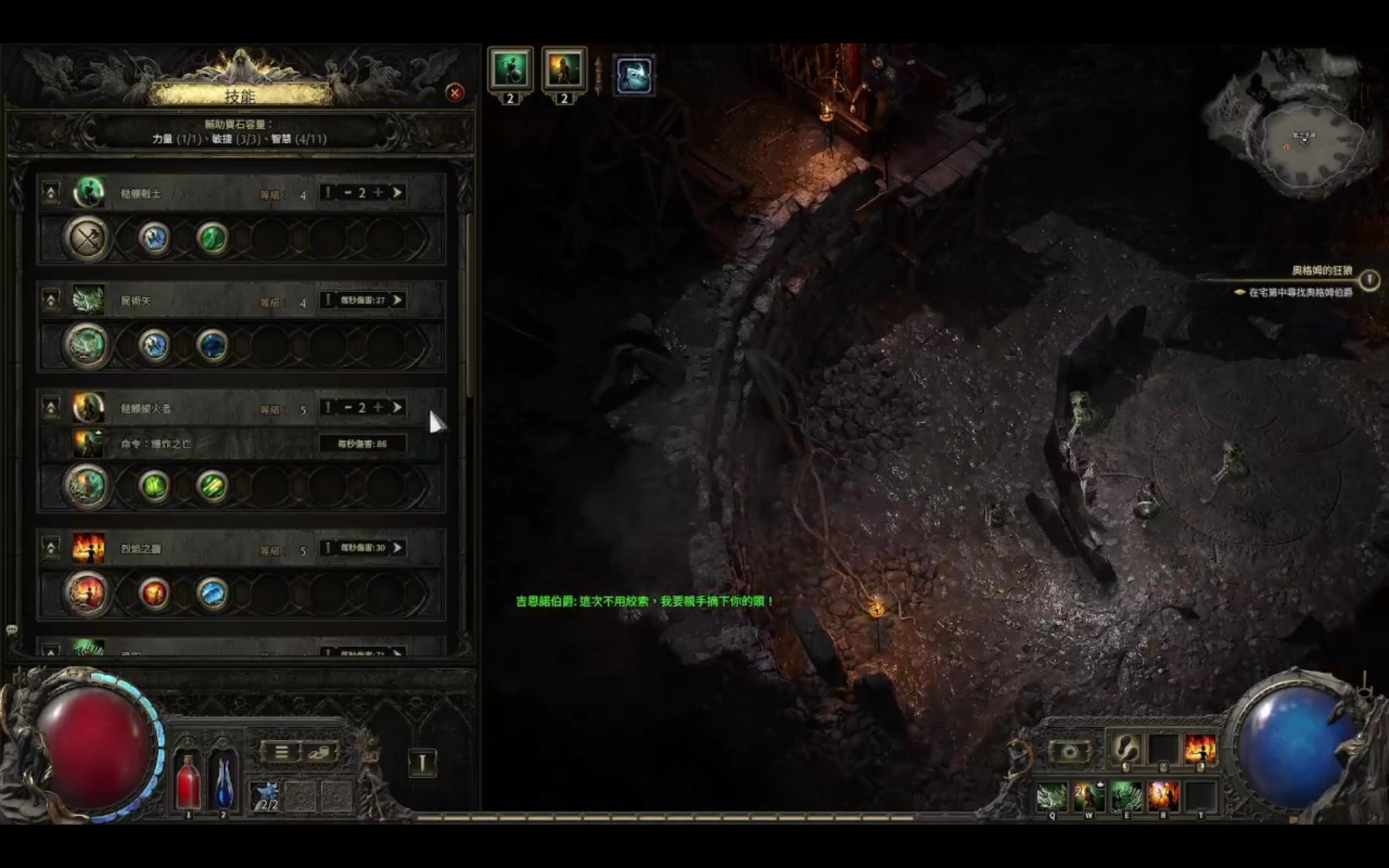击杀boss后这里赠送了三级主技能宝石,我这边也是先将骷髅纵火者点出来并配上多重射击和火焰灌击两个辅助技能