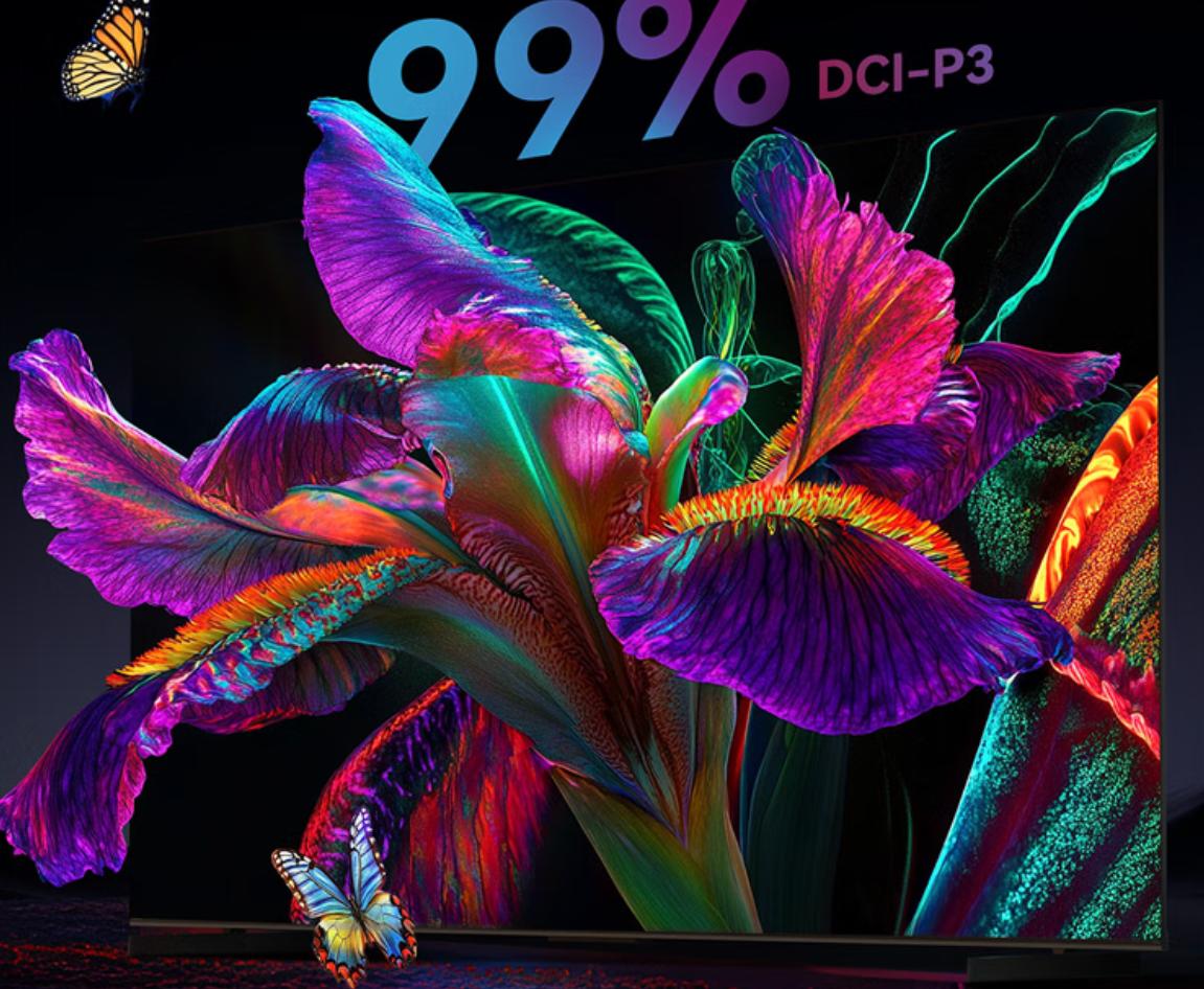 采用京东方定制墨晶屏,融合AG防眩层、LR低反膜及STW广视角补偿层,实现2.6%超低反射率(行业平均5.6%),强光下无眩光干扰,178°侧视无偏色泛白。画质方面搭载2340分区Mini LED背光,峰值亮度3800尼特,动态对比度超100万:1,结合蓝宝石基底Mini LED透镜技术及信芯AI画质芯片H6,精准抑制光晕,暗场细节纯净,色域覆盖95% DCI-P3,色彩层次鲜明。