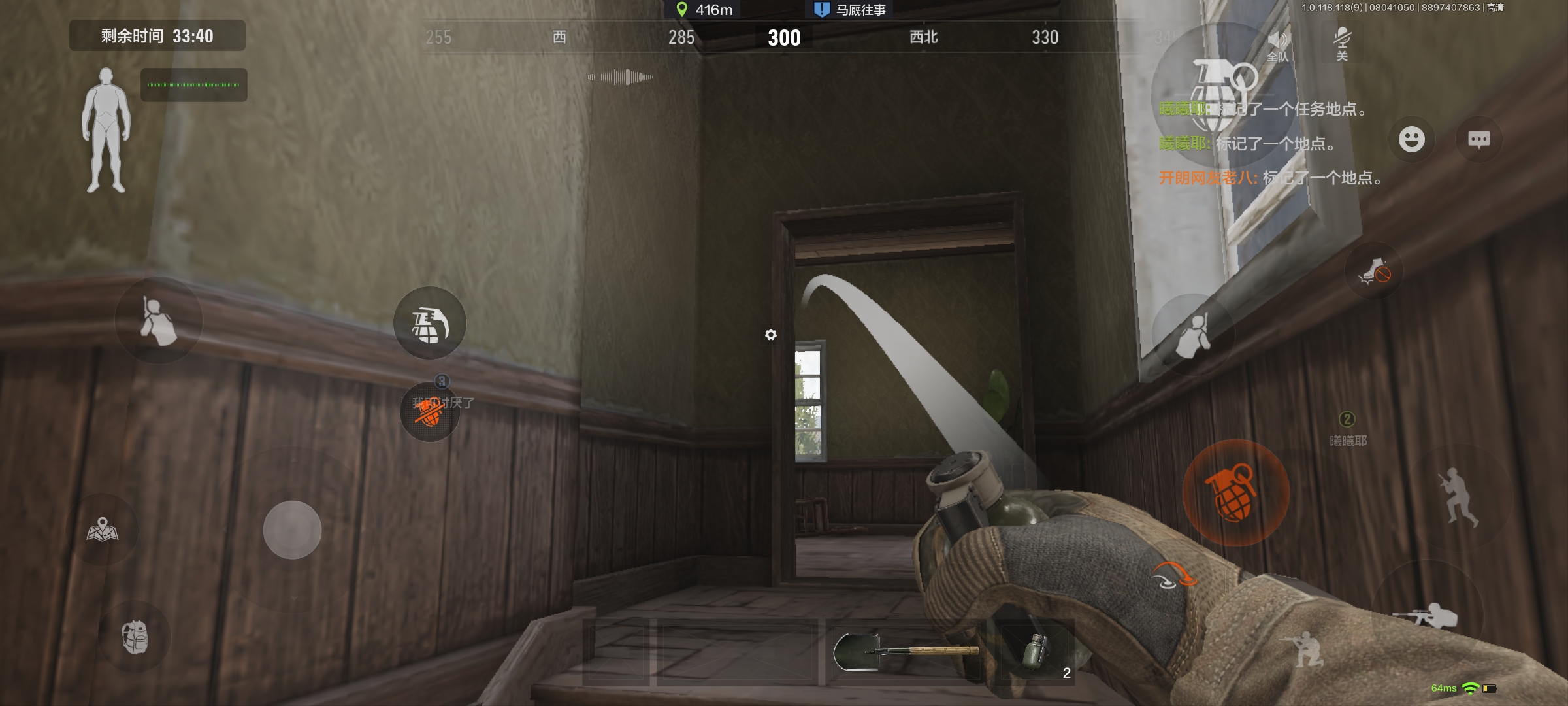 总之别墅的攻守的不能急,很多情况是通过手雷制造耳鸣再冲上去或者冲下来把敌人干掉。同样的也可以在二楼卡位当老六,所以大家如果说后来别墅,一定要先用手雷排点。