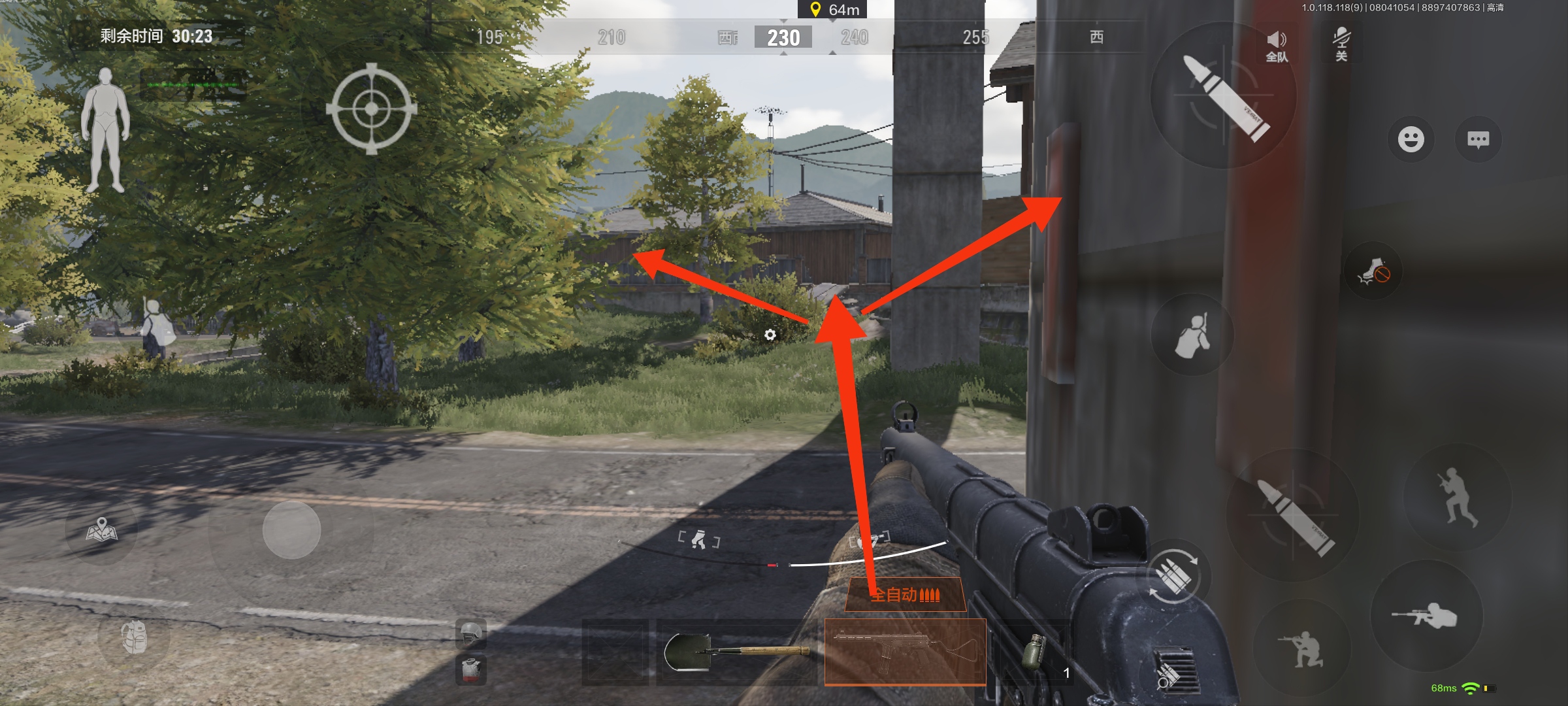 出生在高速公路边的话可以直接去别墅,如果运气好,别墅出生点没刷玩家那我们就是第一身位,反之建议在别墅外面先听一下脚步声,再决定怎么进去。
