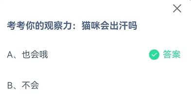 考考你的观察力:猫咪会出汗吗?支付宝蚂蚁庄园3月3日答案