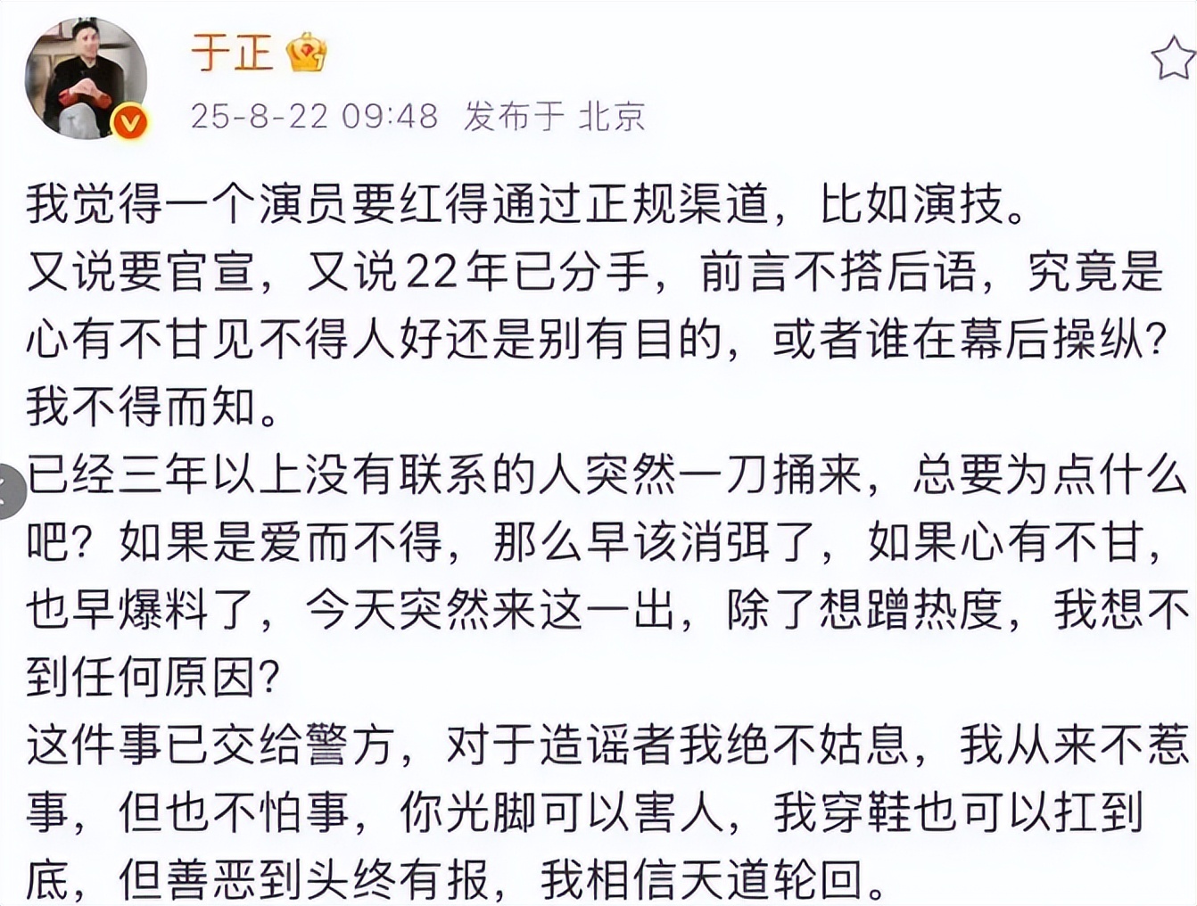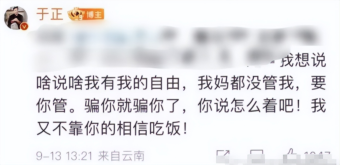 这话有理,但于正也说了,被一个三年不联系的旧人突然背后刺了一刀,这个不能忍。