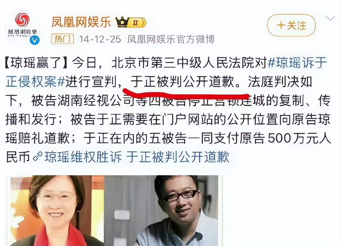 重点是,很多人都忘记于正是一个道德有瑕疵的人,曾经因为抄袭琼瑶被告上法庭。