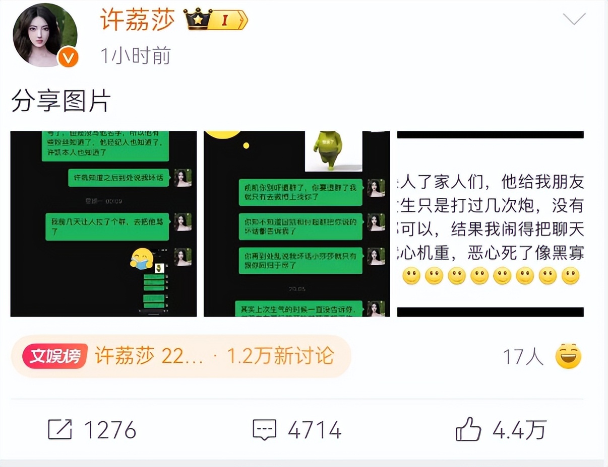 短短不到一个小时,许荔莎发了将近10条微博,持续披露更多细节。