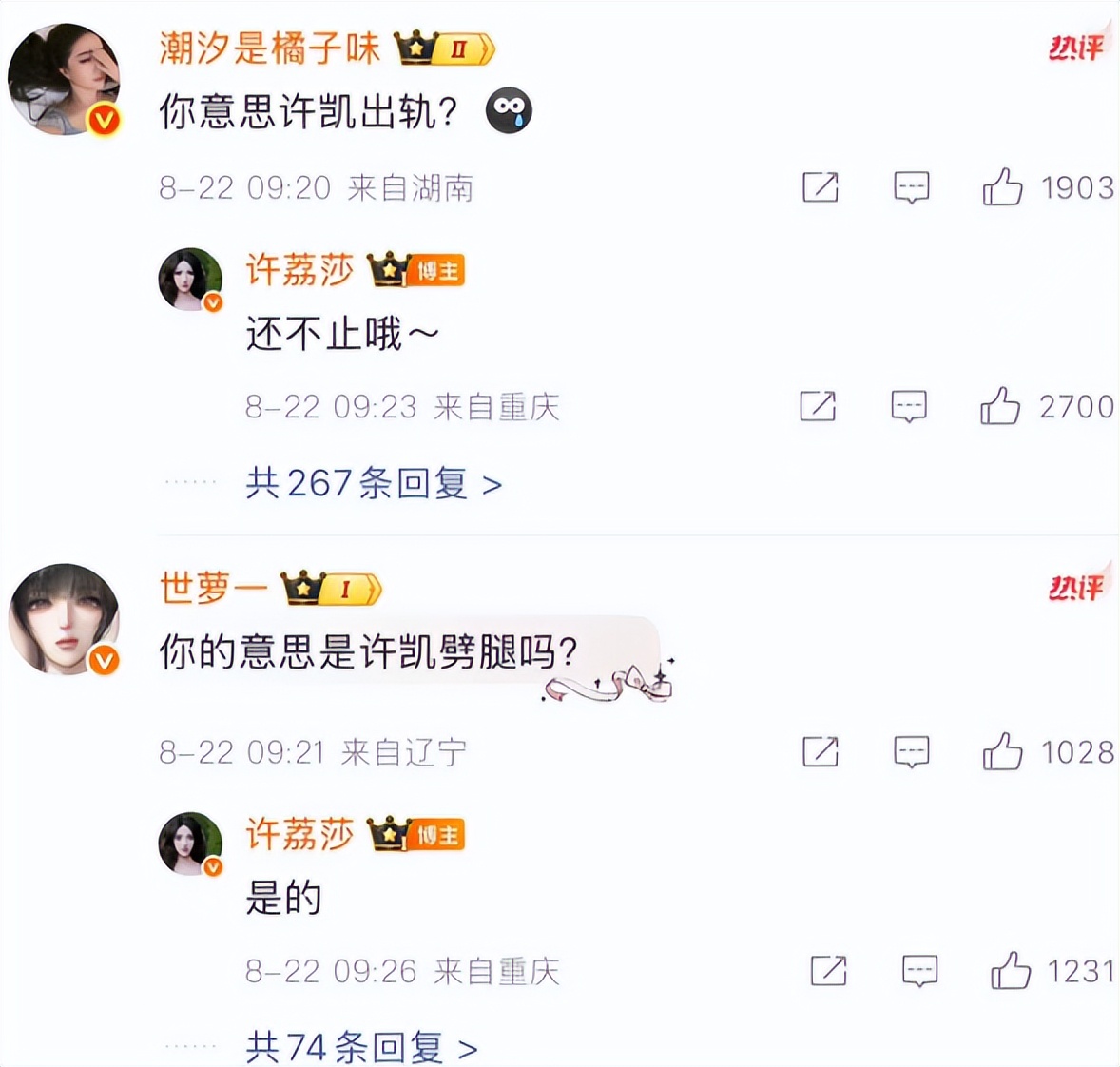 目前徐凯本人没有正面回应,许荔莎一己之力把他们仨人的恋情绯闻送上热搜。