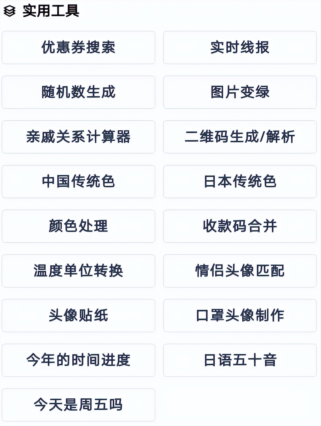 另外这个 App 还自带了一些稀奇古怪的玩意,比如实用工具、图片相关、文字处理以及编程开发工具。