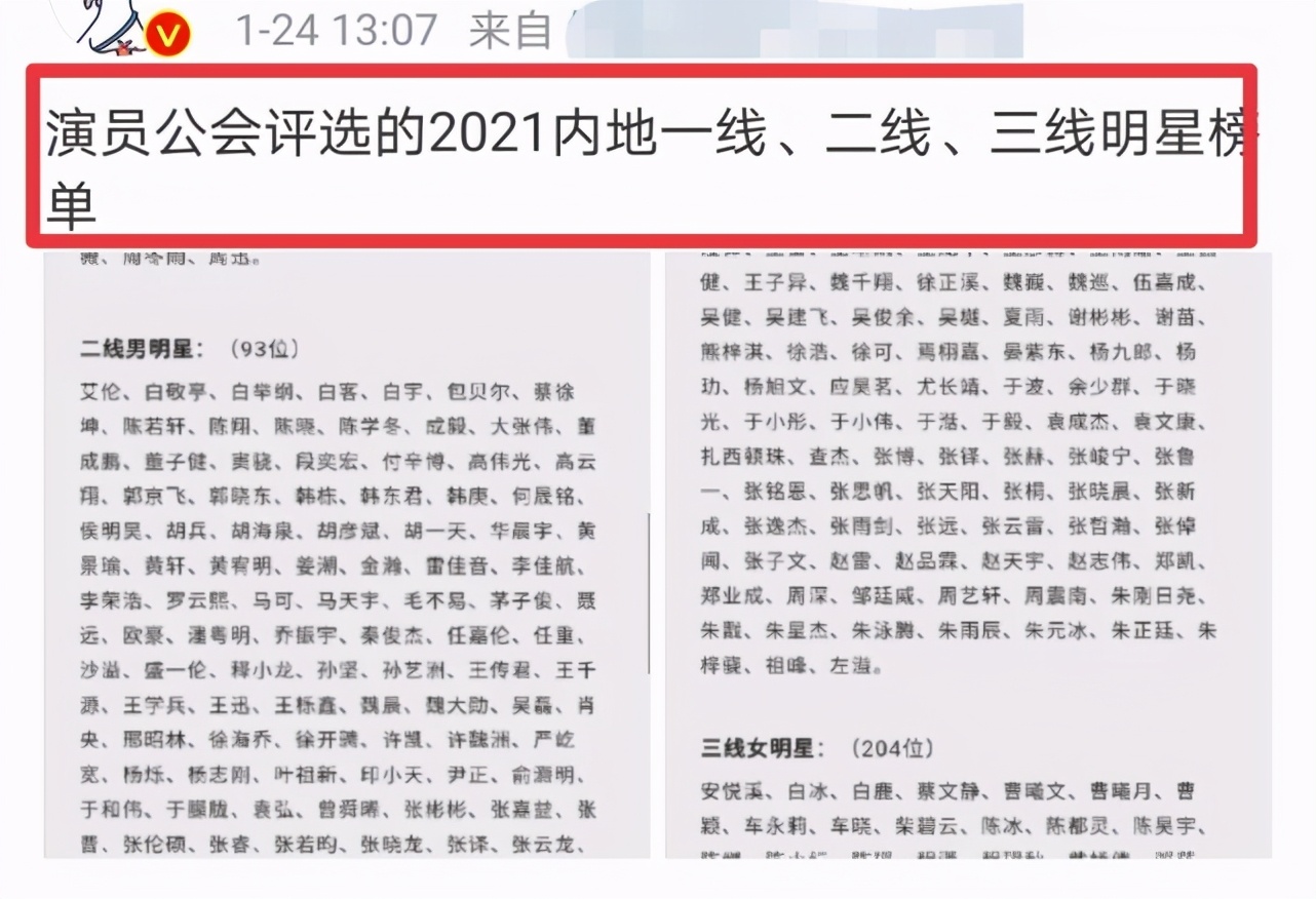 在24号,演员公会揭晓2021年内娱艺人的线星评级榜单,把数百位明星评为一线、二线和三线,其中在最受瞩目的肯定是有哪些艺人进入一线明星阵容?