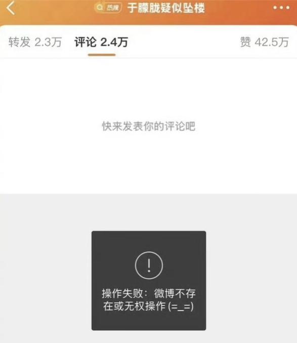 演员邢菲,曾与于朦胧合作《明月曾照江东寒》,发文称:“希望是假的!一定是假的!”此后也删除了该动态。