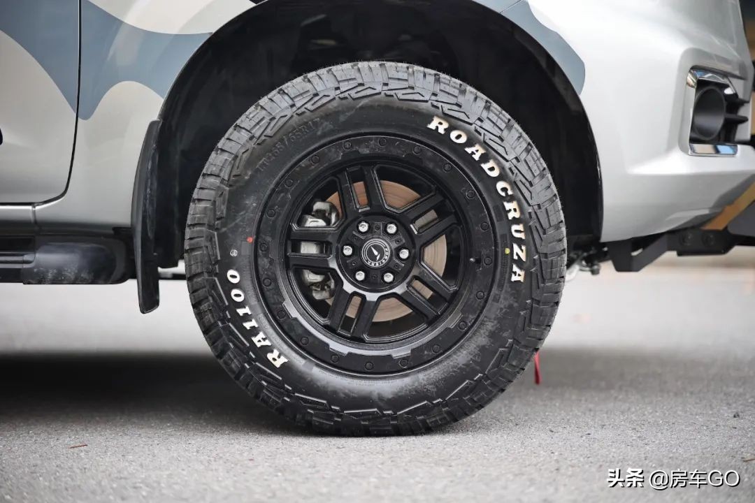 与霞客乐纳瓦拉 SUC不同的是,厂家对锐骐6 SUC的定义更加偏向于“长途穿越”,原因在于这台车可以选装副油箱,这样续航里程可以达到1600公里。配合越野前杠、LED探照灯、13500磅绞盘以及尺寸255/70 R16的AT越野胎,207mm的离地间隙,加上接近角31°/离去角22°,去一些普通房车根本不敢走的路也不成问题。