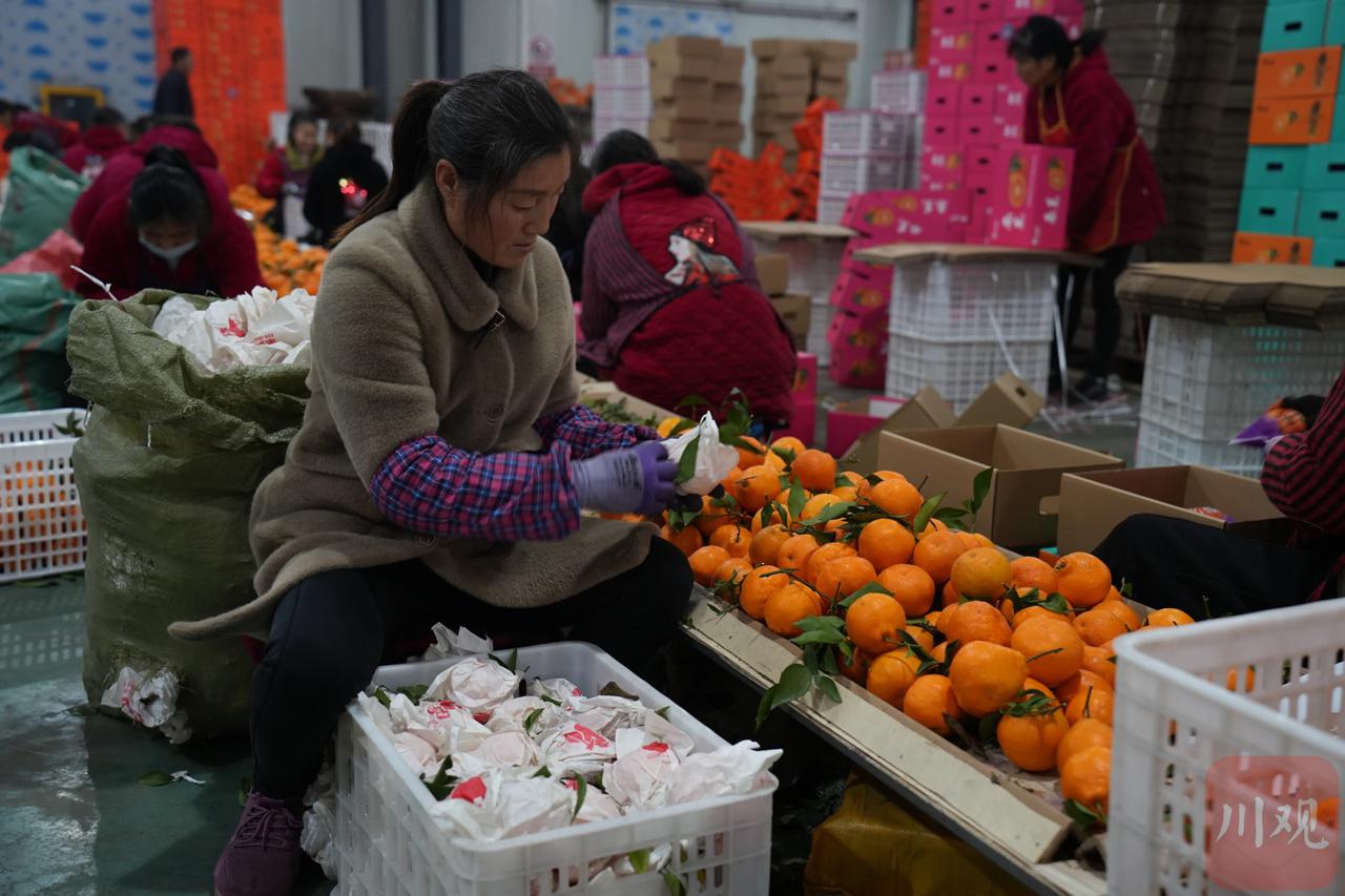 11日下午,川观新闻记者来到蒲江县西来镇两河村农产品集中配送中心(简称“集配中心”),500余名工人在偌大厂房里分选、包装、装车……一箱箱耙耙柑从这里运往国内10余个城市。