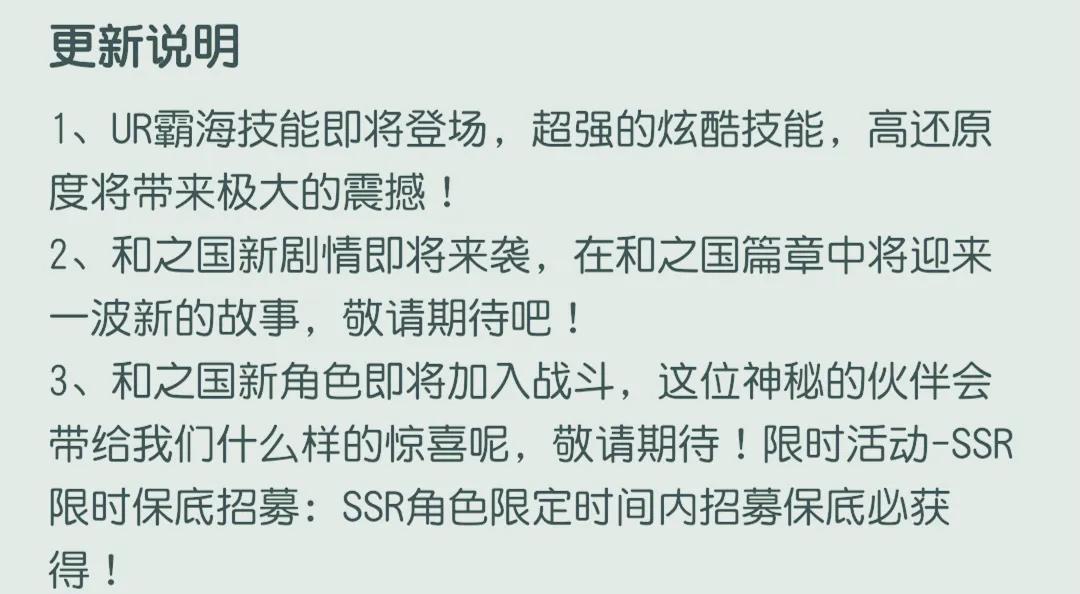 本次更新内容部分可以在一些游戏商店查看,咱们这边就找到了相关的更新内容。首先是UR【霸海】合体技要上线了,暂时还没开启,所以这个是说要7月11号才上线。