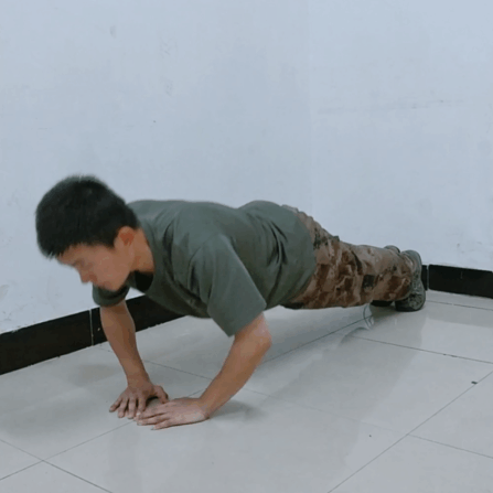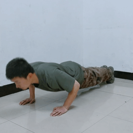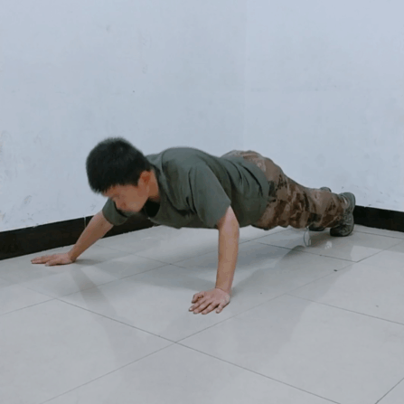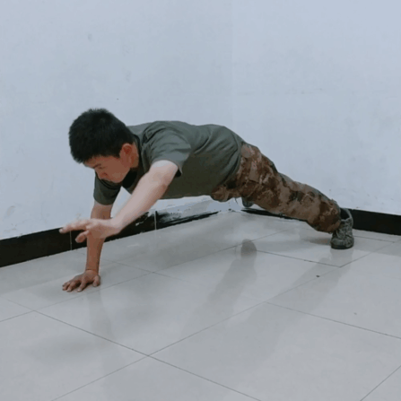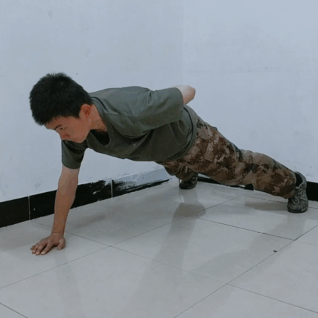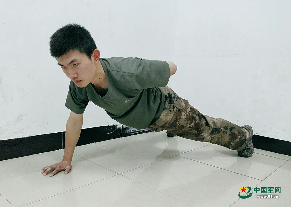 俯卧撑是部队最常用的训练动作之一,许多战友都会将它作为自己长期的训练内容。坚持做标准的俯卧撑,可以有效锻炼肱三头肌和胸大肌,同时对腰腹核心的锻炼也有很好的效果。通过努力,大多数战友一口气可以做七八十个标准的俯卧撑。有时候会认为这个时候的力量已经非常了不起,可如果尝试一下单臂俯卧撑后就会发现,这还是远远不够的。