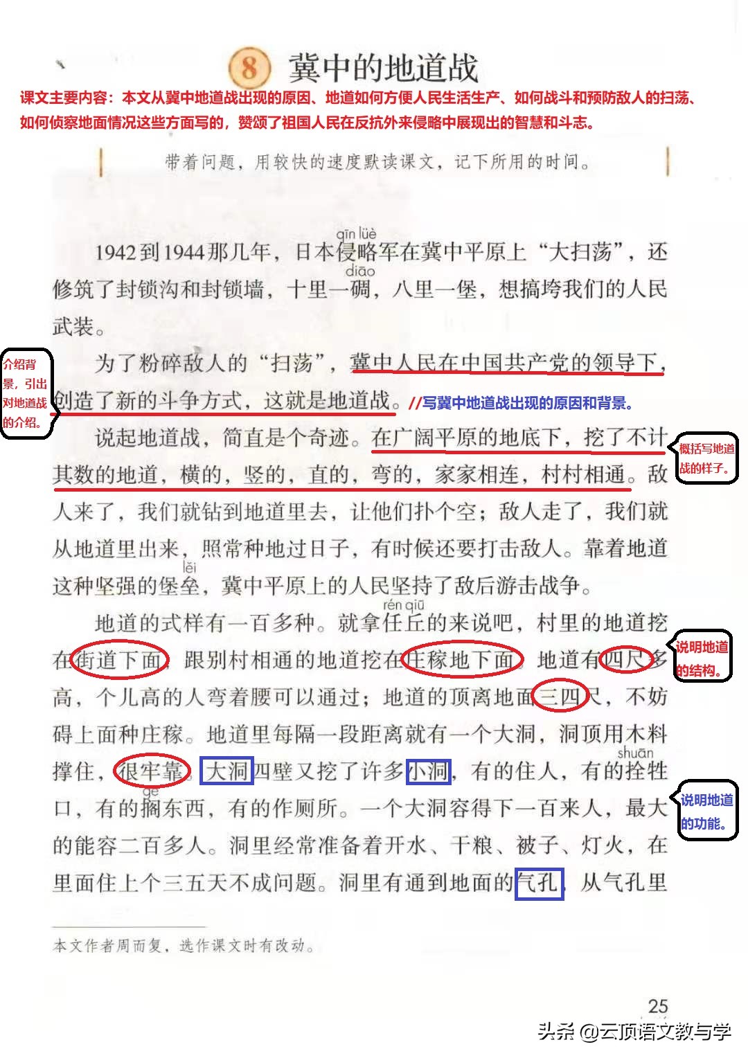 《冀中的地道战》笔记:抓关键词与带问题读策略解析、练习答案