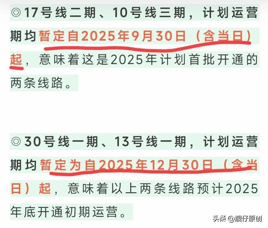 17号线二期和10号线三期计划是在2025年9月30日开通,这也是成都地铁25年最先开通两条线路。在年底,30号一期和13号一期将会在2025年12月30日开通。