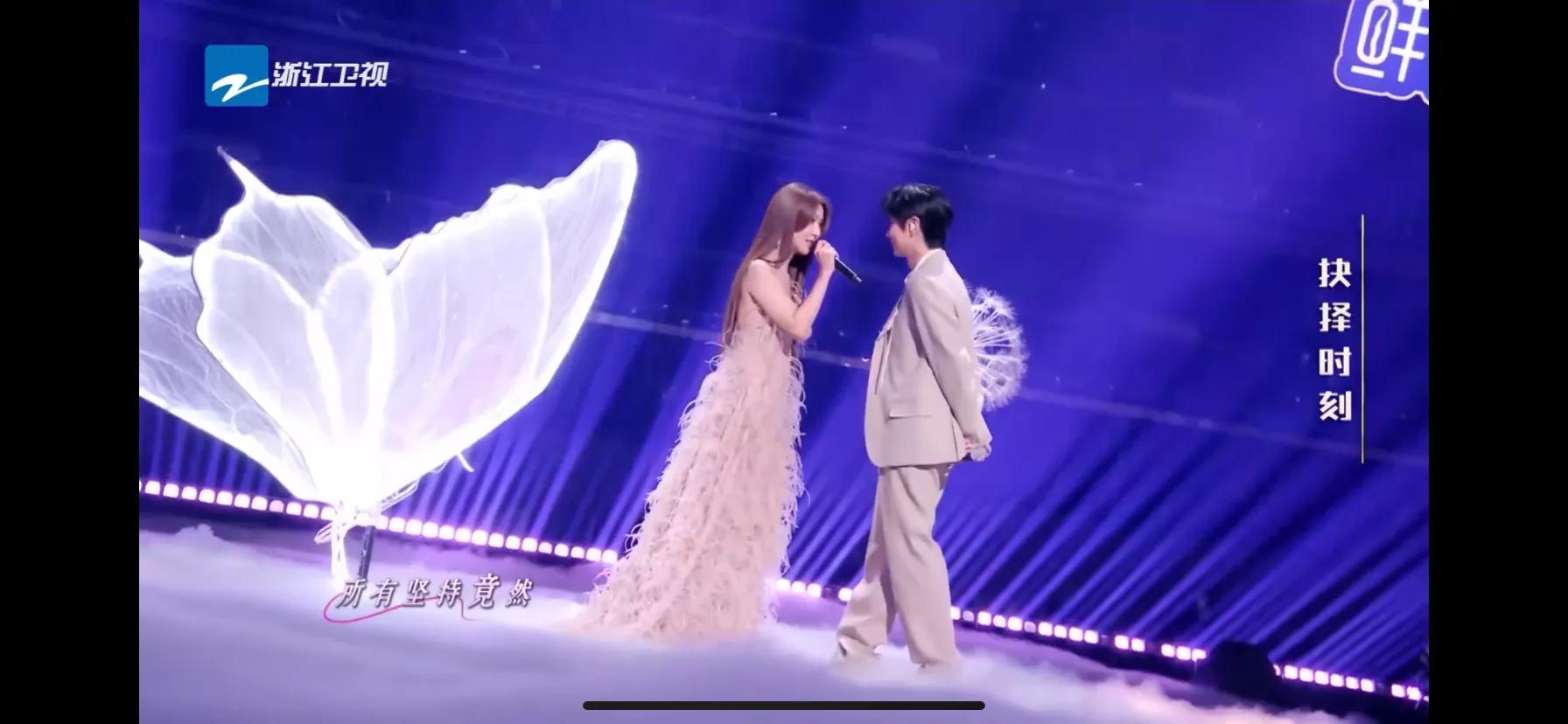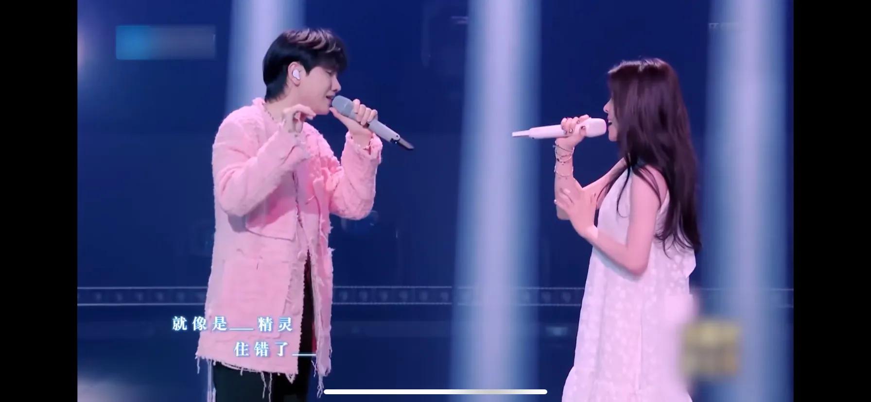 感觉就是两个甜妹的搭配,把悲伤唱出了甜蜜的感觉,而且舞台效果也是真的很有恋爱的感觉,台下的人都快磕疯了。
