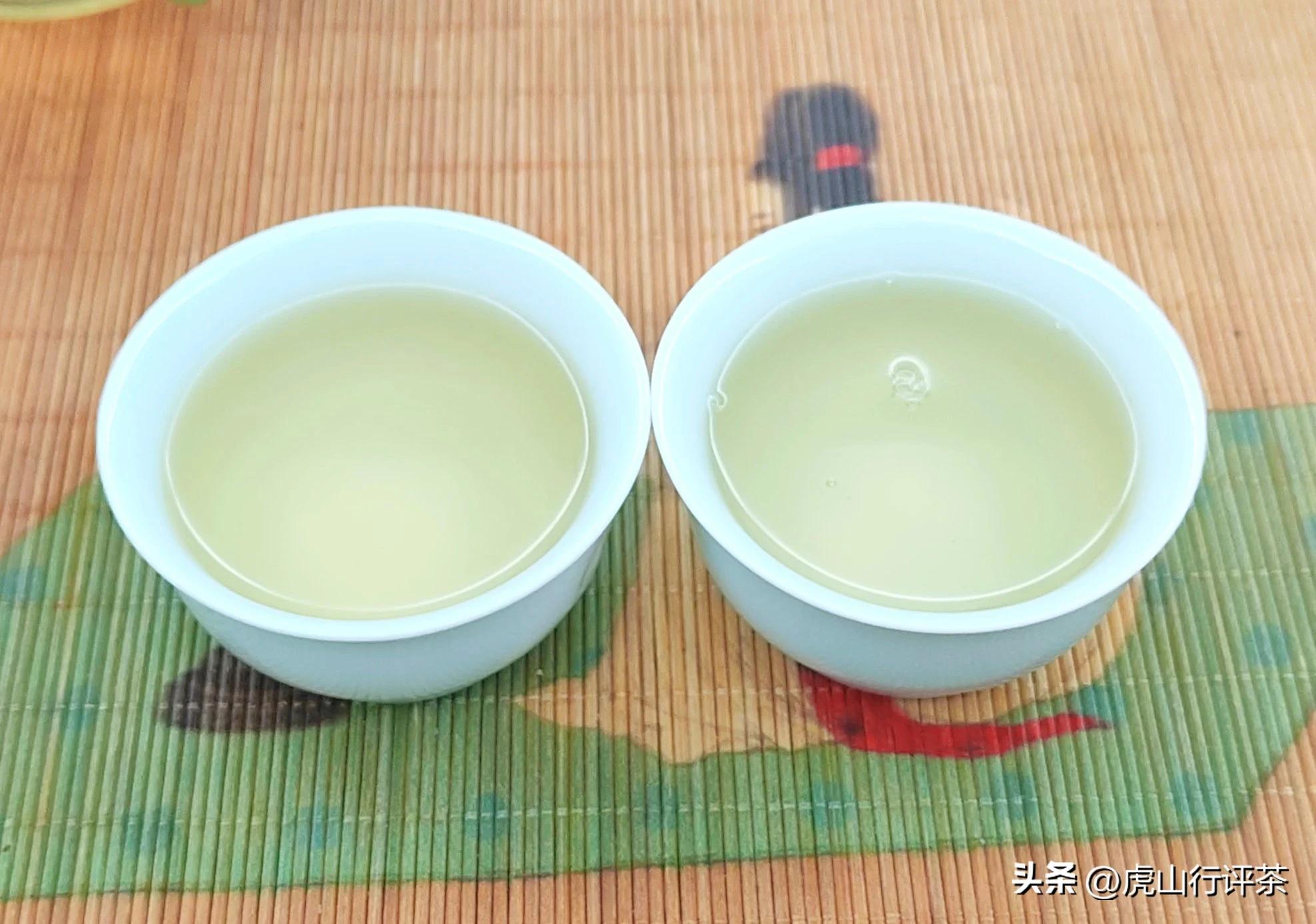 茶汤颜色上两者基本一致。对比结果看同样是泉阳泉冲泡的茶汤,香气更浓,而农夫山泉则在苦底强度、甜感回馈以及生津感上更到位。