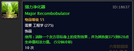 此饰品可谓是神品,不同于铁皮手雷,这个3秒完全就是魔法类硬控(类似肾击,制裁之锤,偷袭),CD时间15分钟。只有法师闪现,圣骑无敌,或者某些职业交章才能解除,所以这个36级的饰品也是一个炽手可热的控制类PVP极品。