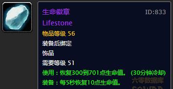 这货CD居然需要30分钟,回复的HP只能说是太鸡肋了。只能在60年代前期凑合用用,一到MC阶段这个饰品只能彻底丢弃。世界掉落,拍卖行随便花点钱就能买到了。