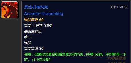 使用:召唤你的奥金机械幼龙为你作战,持续1分钟。冷却时间一小时。 (1小时冷却)
