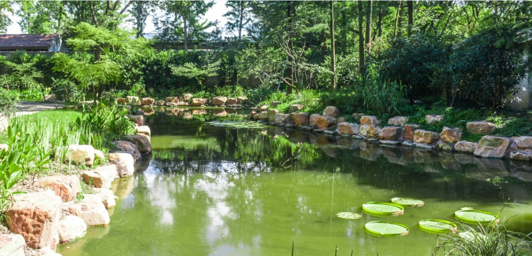 竹径通幽,若踏径而去,如入诗境一般。而“水乡映秀”则将江南水乡独有的水榭、竹亭临湖而设,湖面波光盈盈,蓝天白云、绿树浓荫倒映其中,形成一幅古朴雅致的江南水乡风貌。