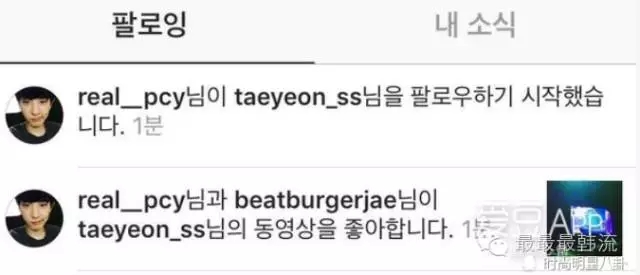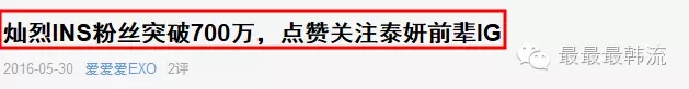 然后在16年5月朴灿烈INS粉丝突破700w的时候,这孩子关注了公司的前辈金泰妍