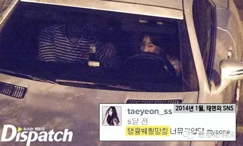 从D社曝光的约会照来看,两个人是在泰妍的车里约会的,约会的地点似乎是EXO的宿舍楼楼下?两个人完全没有遮拦,这也是为什么会有摆拍和假恋情的说法存在的原因。