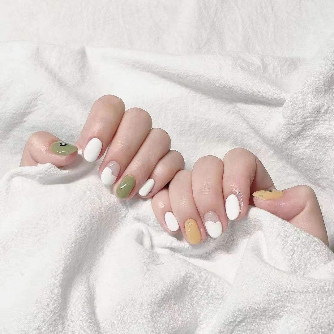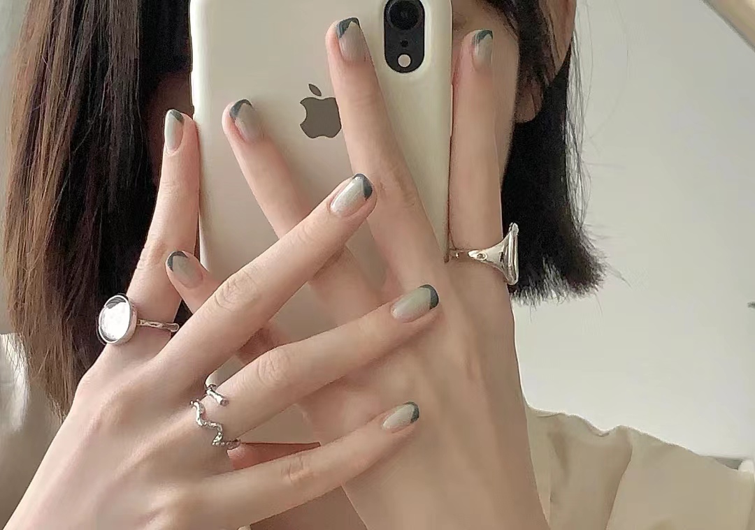 莫兰迪色,半法式让短圆指甲可爱起来~