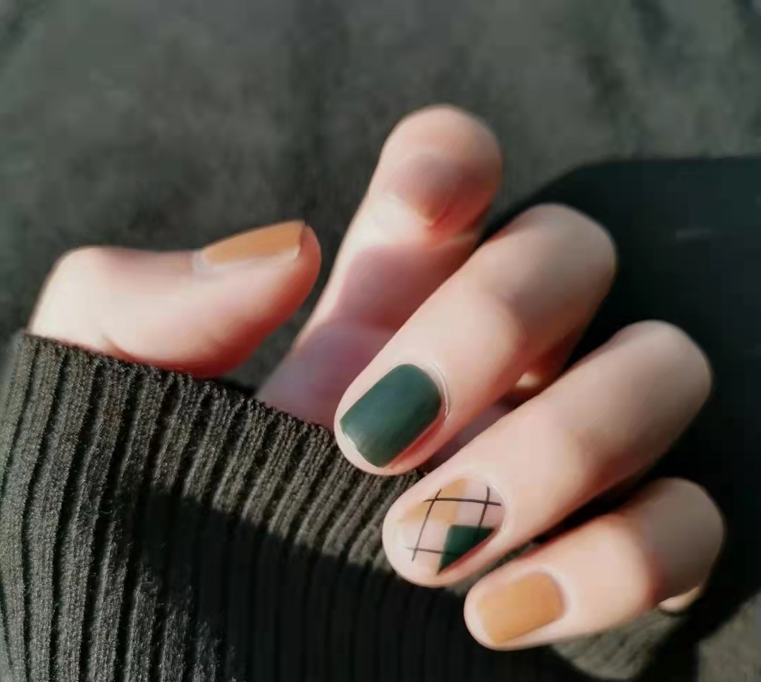 谁能拒绝一款秋天色的通勤格子美甲呢~