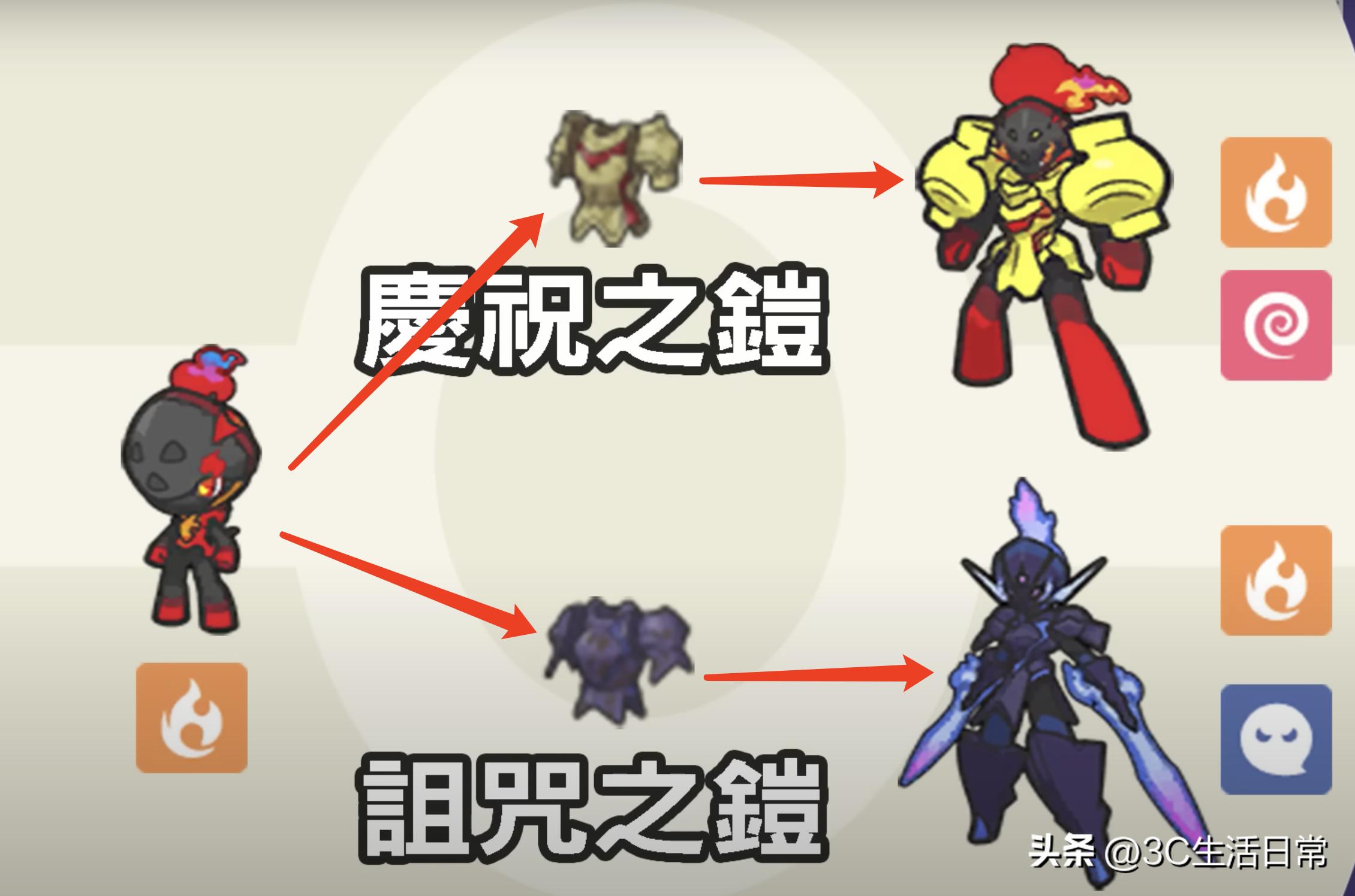 红莲铠骑和苍炎刃鬼都是由炭小侍进化而来,不同的是红莲铠骑需要庆祝之铠来进化,苍炎刃鬼需要诅咒之铠进化。