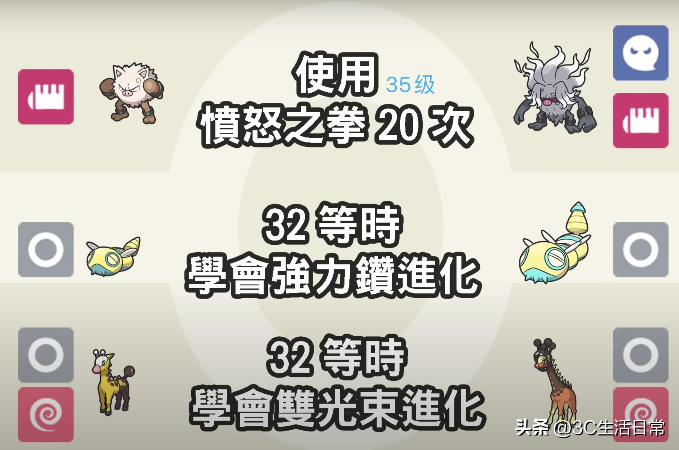 四、需要升级到一定等级使用或学会指定技能时才能进化