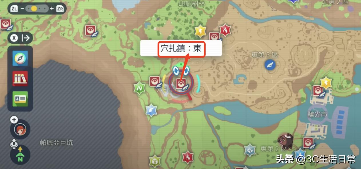 3、寻找宝箱形态的索财灵,一般分布在帕底亚地区的遗迹和高塔上。