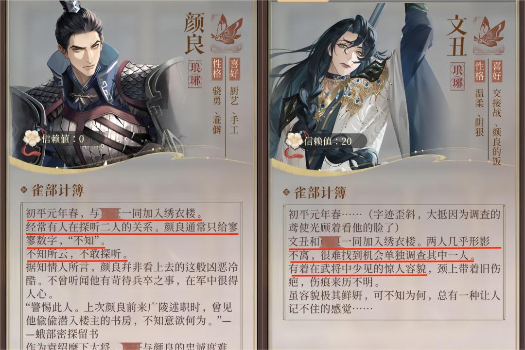 《代号鸢》玩家能嗑的,不仅是主角和男主的互动,还能嗑密探之间的cp。比如,就背景故事来看,游戏中的文丑、颜良应该是一对。