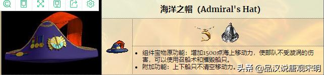 航海家之帽:增加500点海洋移动力,并且不怕漩涡