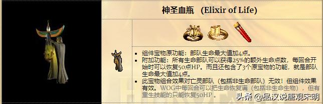 神圣血瓶:部队生命最大值+4,且额外增加25%;每回合初始回复50点生命