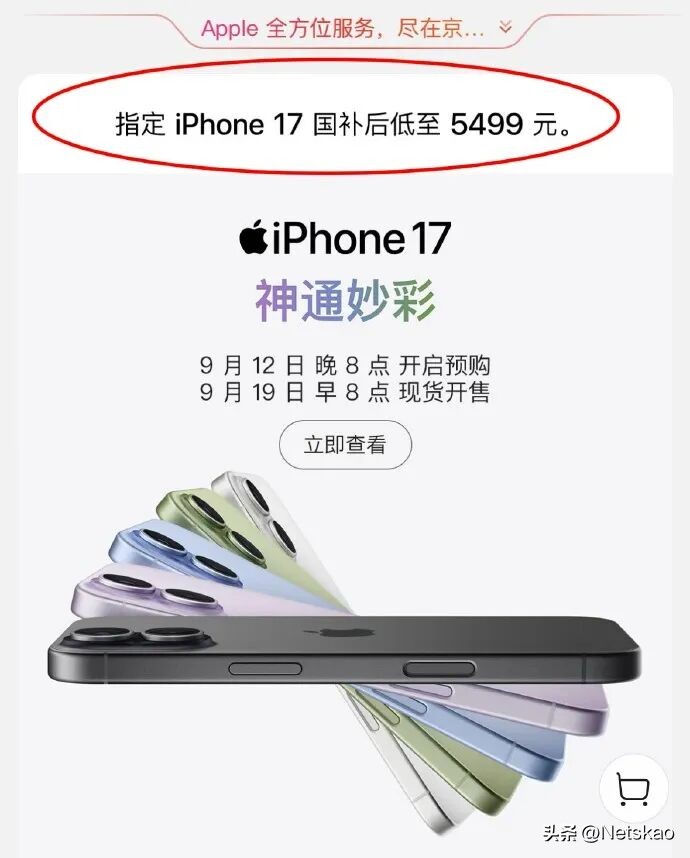 5499 元起!iPhone 17,首发确认支持国补
