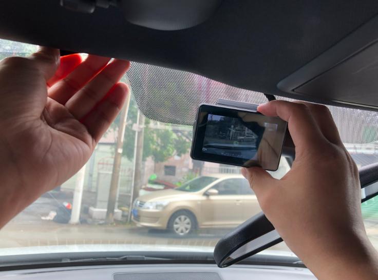 居中装在后视镜右侧,避开底座,同时保证镜头在雨刮器清洁范围内;