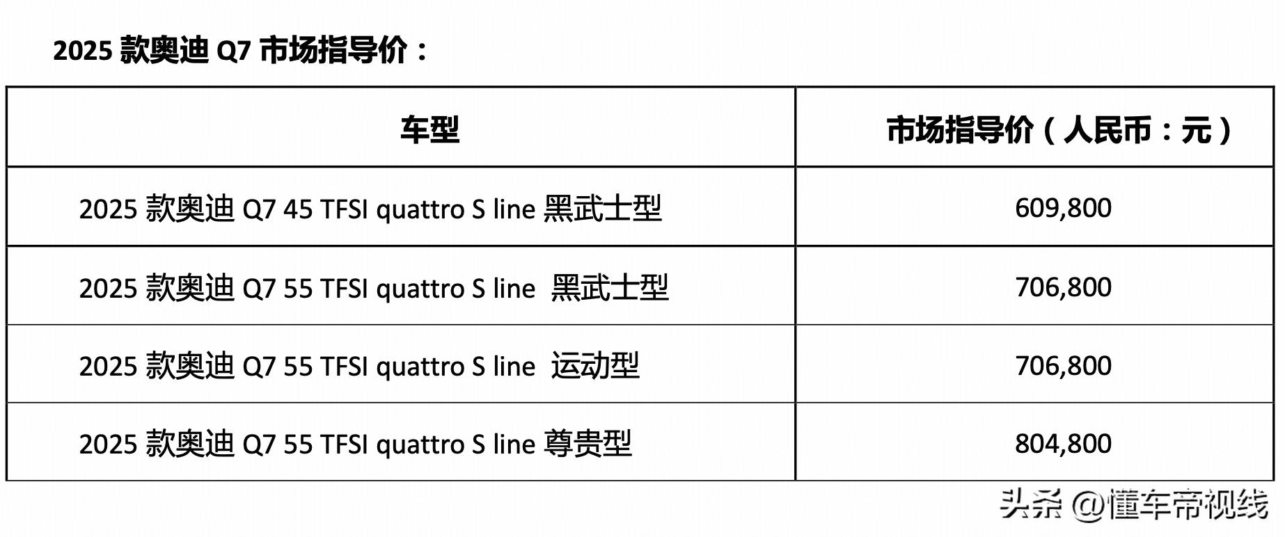 新车 | 配备黑化套件/售70.68万元,2025款奥迪Q7 3.0T黑武士型到店