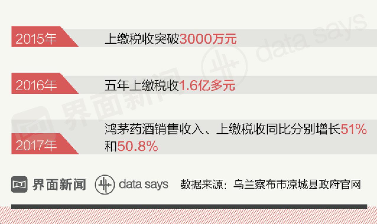 鸿茅药业是内蒙古自治区的纳税大户。《乌兰察布日报》报道,2017年鸿茅药酒零售规模突破50亿元,缴纳税金2.7亿元,并解决当地500多人就业。