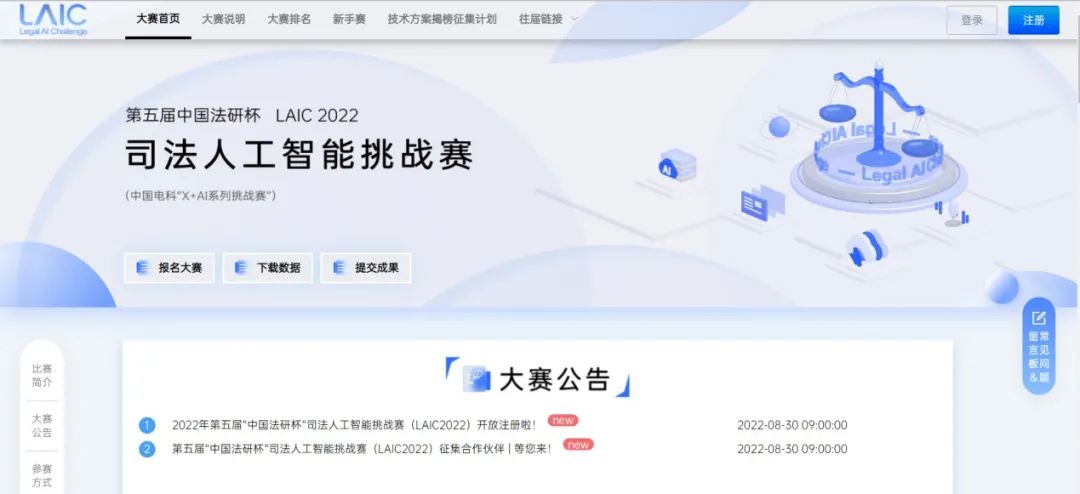 目前,第五届“中国法研杯”司法人工智能挑战赛(LAIC2022)正在如火如荼进行中,距离参赛报名截止已不满20天时间。