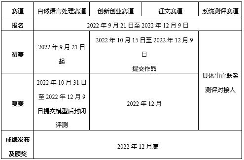 第五届“中国法研杯”司法人工智能挑战赛(LAIC2022)各赛道赛程安排为: