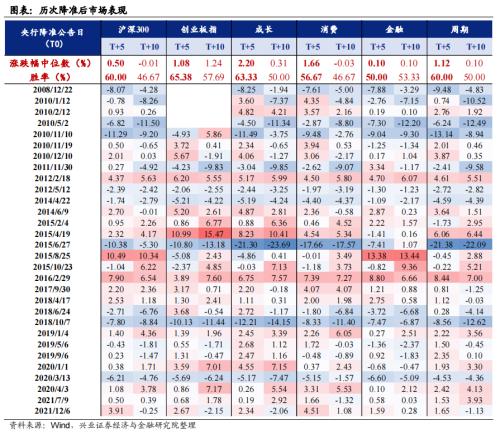 降准有望提振短期市场情绪,历次降准落地后一周市场上涨概率较高,创业板指与沪深300上涨概率均达六成;而从涨跌幅中位数看,降准落地后一周创业板指表现优于沪深300,风格上成长和消费优于周期和金融。
