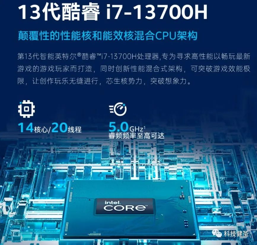 这款产品搭载英特尔13代酷睿i7-13700H和i7-13900H处理器,它们都是6大8小14核心20线程,差异是主频,最高睿频加速频率分别为5.0GHz和5.4GHz。