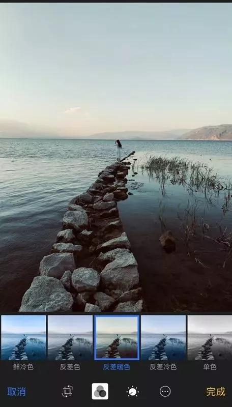 在所有的滤镜色调中,鲜冷色适合拍摄有蓝天的风景照片,天空的蓝色会更加通透,反差色适合拍人像的照片,意境比较唯美。