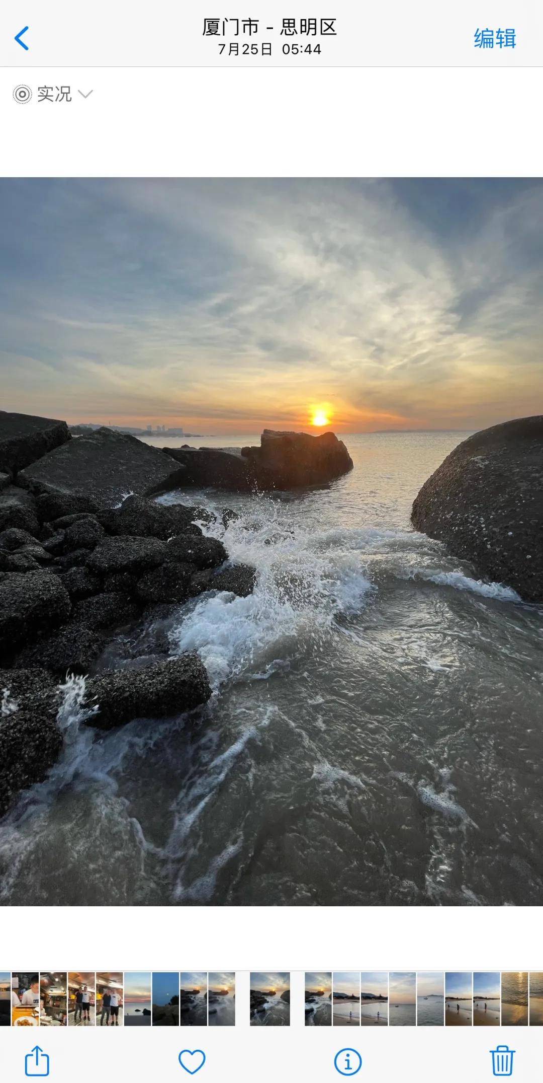 在相册中打开照片,点击“编辑”按钮,再点击下方的滤镜按钮,也能对照片进行滤镜的添加: