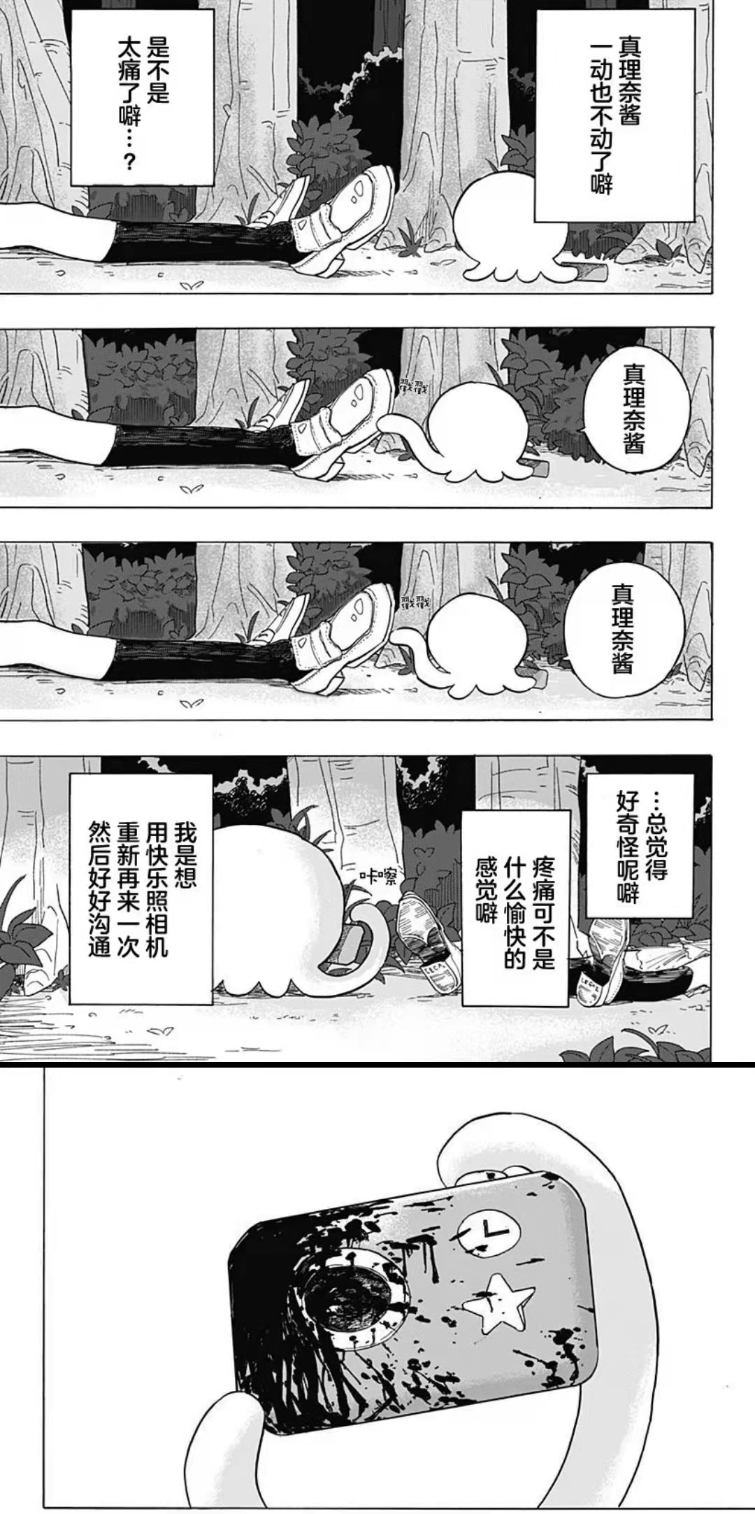 所谓杀人,就是章鱼噼的原罪,到这里作者的控诉戛然而止,转而开始描述真理奈之所以成为霸凌者的诱因,而静香香与章鱼噼开始共谋如何掩盖这次杀人事件,众所周知,现在的读者喜欢非黑即白的立场,如果你选择中立的角度去分析两方的对错,那八成两边都讨好不了,这部漫画现在仍在连载中,喜欢的朋友可以去搜索追更!