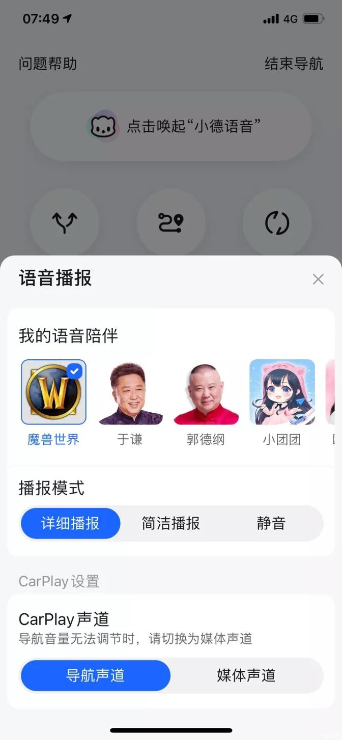 在高德地图设置,导航设置里面,可以修改CarPlay声道为导航声道和媒体声道。当设置为导航声道时,导航播报时,就是降低音乐,而不是暂停音乐,同时导航的音量可以单独调节。