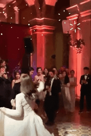 ▲新婚晚宴party,在意大利米兰的古堡里丈夫吴启楠将文咏珊高高托起,完成了他们的第一支双人舞