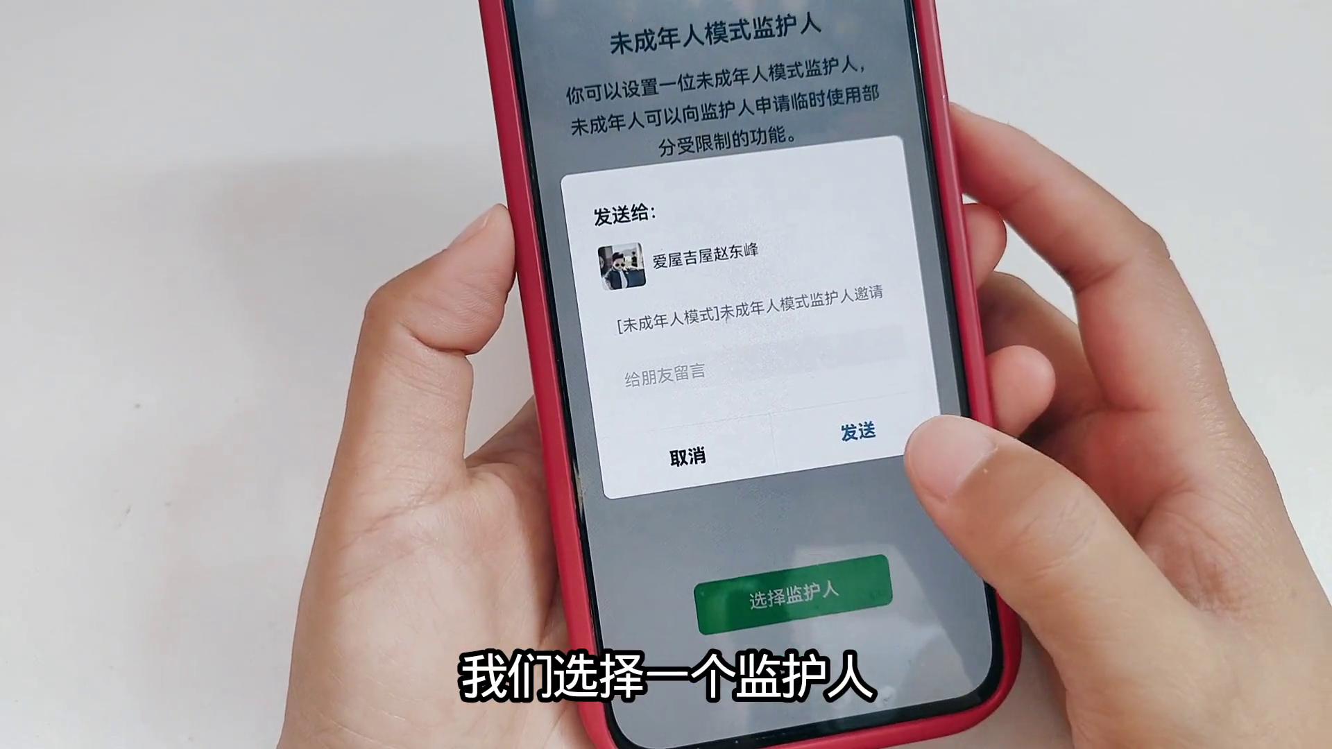 ·设置好之后,这边可以设置一个监护人,未成年人想要向监护人申请临时使用部分受限制的功能,选择一个监护人发送给对方。