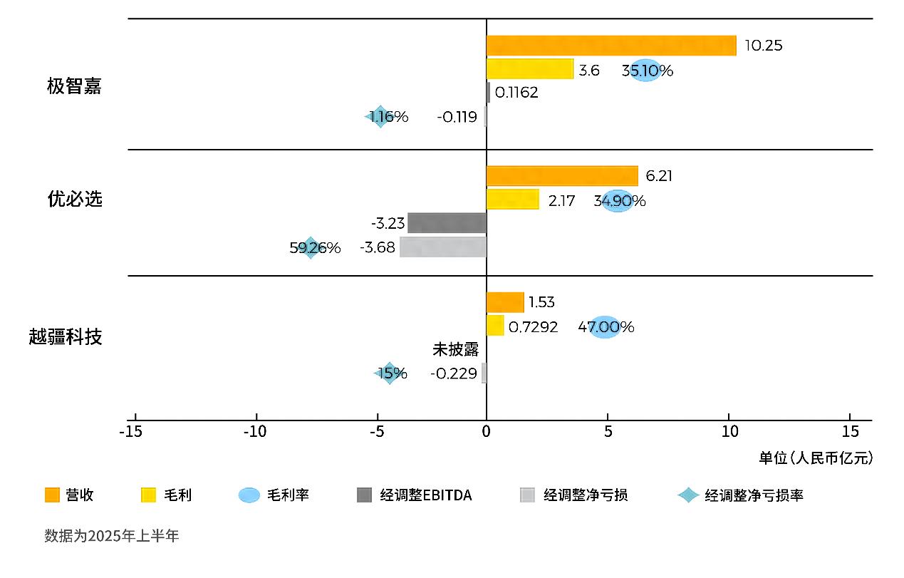 从2025 年中期业绩表现来看,最大的亮点当属港股机器人板块迎来首家经调整EBITDA转正的企业——极智嘉经调整EBITDA转正至1162万元,其经调整净亏损率最低,这意味极智嘉最接近盈利拐点,有望成为最先盈利的港股上市机器人公司。此外,极智嘉还交出了营收毛利双高增的亮眼答卷,营收同比增长31.0%至10.25亿元,毛利同比增长43.1%至人民币3.6亿元,充分印证了公司商业模式成熟度与盈利能力。透过图表不难看出,极智嘉在三家企业中收入规模和毛利最高、经调整净亏损及经调整净亏损率最低,商业化实力在港股机器人板块一路领跑。